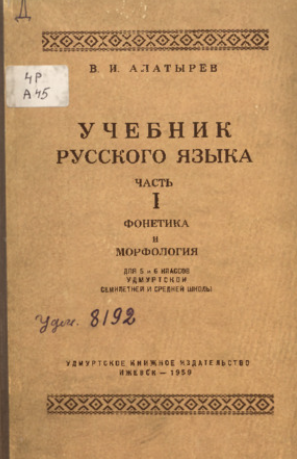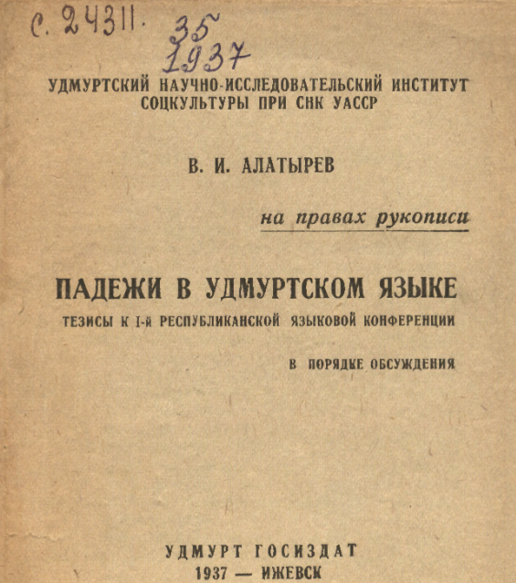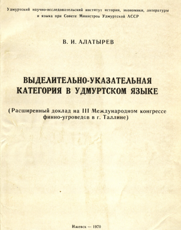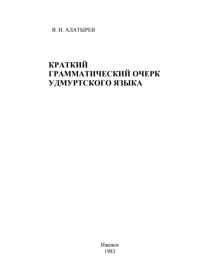 В. И. Алатыревлэн «Краткий грамматический очерк удмуртского языка» ужез Удмурт-ӟуч кыллюкаме (2008) пыртэмын.