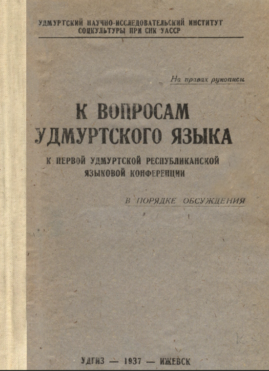 1937–1938-тӥ аръёсы Ленинградысь Кылъя но гожъяськетъя институтын (Институт языка и письменности) но Кылъя но мышлениея институтын (Институт языка и мышления) ужаз.