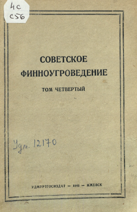 «Советское финноугроведение» журналлэн 4-тӥ томаз печатламын куд-ог докладъёс, кудъёсыз лыдӟемын вал финн-угор кылосбуръя Всесоюзной тодослыко конференциын (23 толшоре — 04 толсуре 1947-тӥ арын).