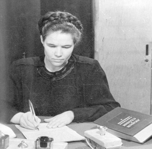 Туспуктэмын Т. И. Тепляшина пуке. Вӧзаз Любовь Алексеевна Овчинникова сылэ. Л. А. Овчинникова но Т. И. Тепляшина ӵошен тушмонлы пумит нюръяськизы