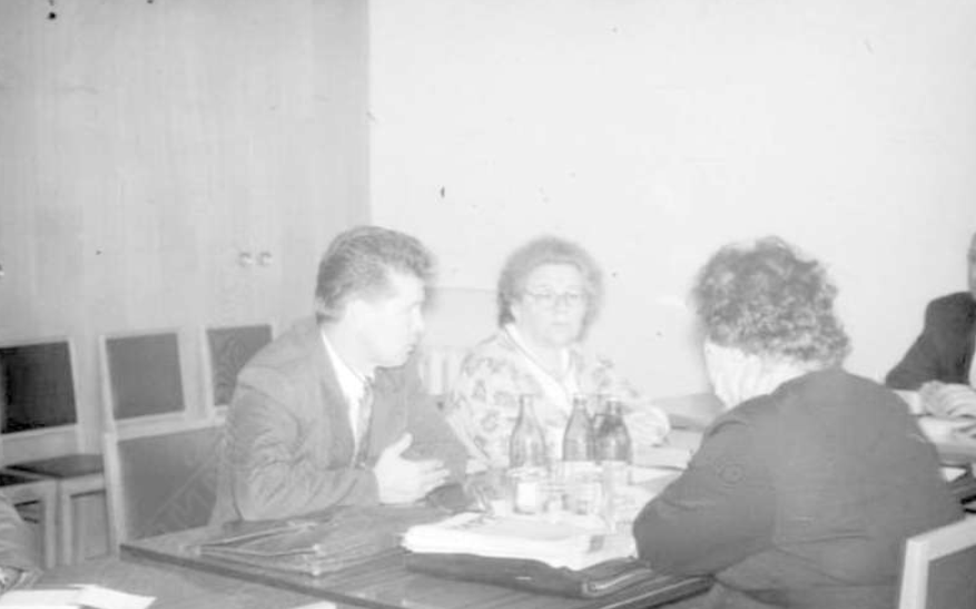 Яшина Р. И., «Удмурт Кенеш» огазеяськонлэн кивалтӥсез, финн-угор калыкъёслэн Ассоциацизылэн исполкомезлэн заседанияз. Паллян палан — А. И. Бакулин, бур палан — Т. Н. Изотова (1994-тӥ ар)
