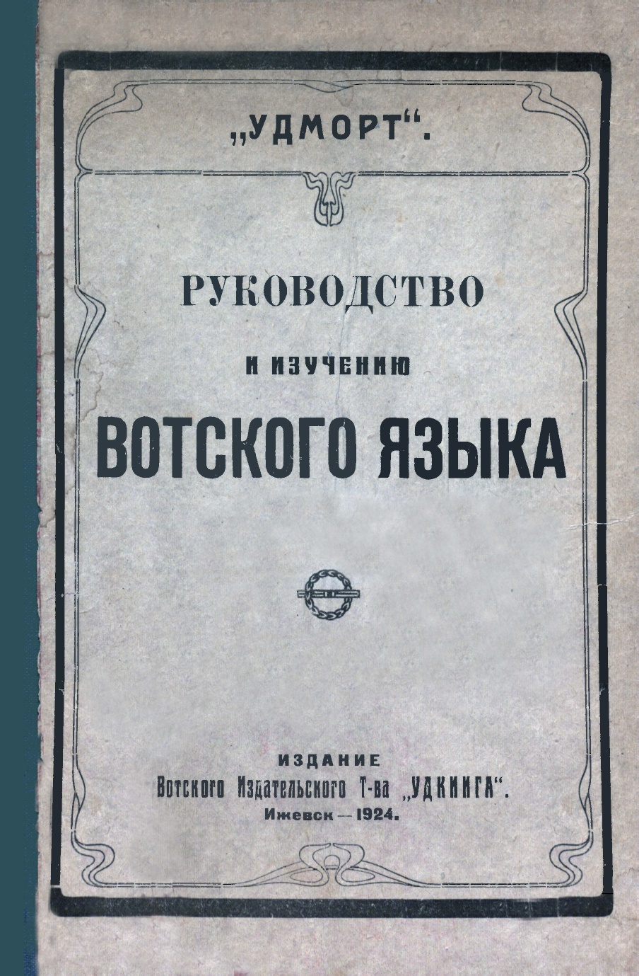 Верещагин Г. Е. Руководство к изучению вотского языка / Удморт.— Ижевск: Удкнига, 1924 (Ижправда).— 120 с.