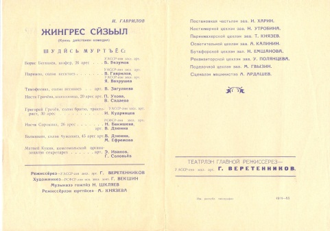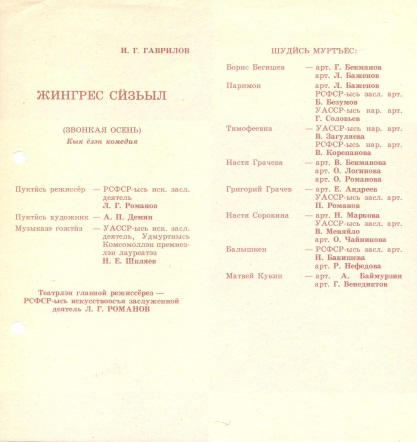 УАССР-лэн Кун премиеныз И. Гаврилов пусъемын «Жингрес сӥзьыл» пьесаез понна.