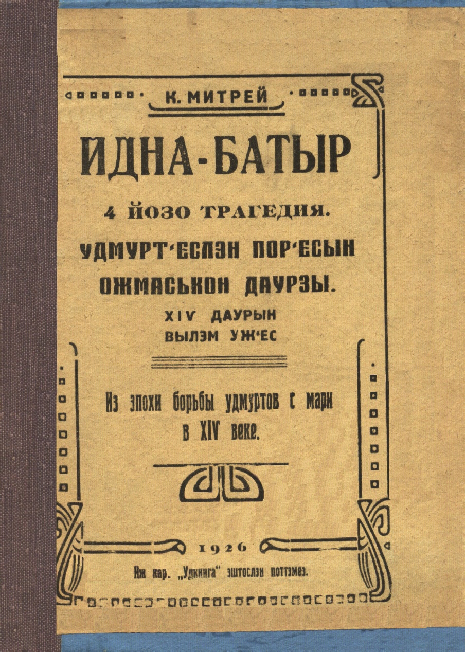 1915–1928-тӥ аръёсы Кедра Митрей удмурт батыръёс сярысь «трилогиез» бордын ужа. Гожтэ «Эш-Тэрек» но «Идна батыр» трагедиоссэ, «Юбер батыр» поэмазэ.