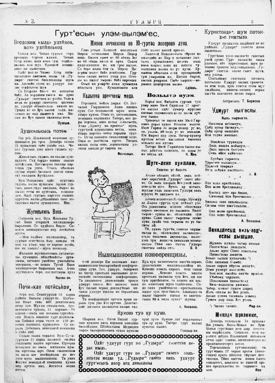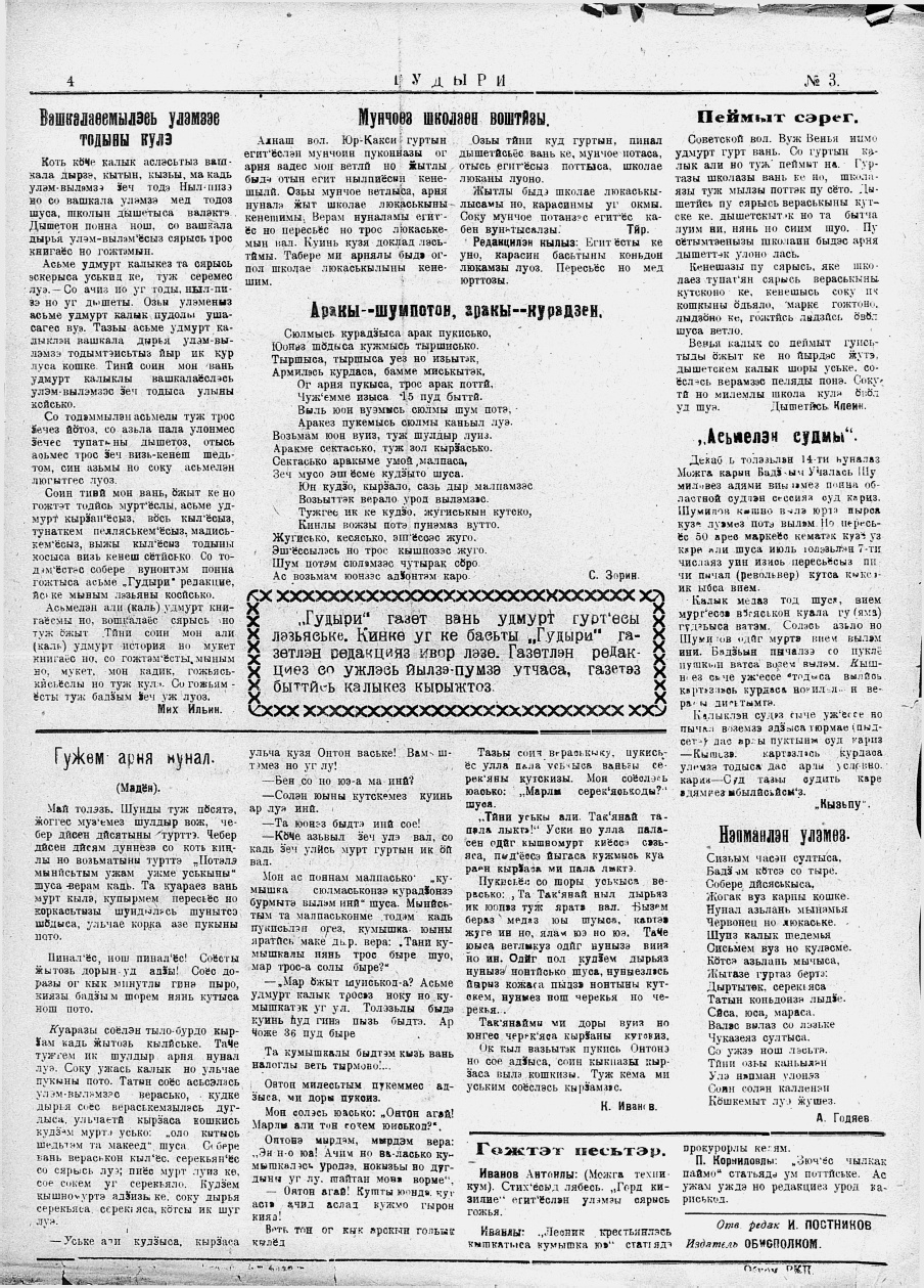1949-тӥ арын Новосибирск улосысь Чумаково черкогуртын удмурт калыклэн одӥгез дано пиез висьыса кулэ.
